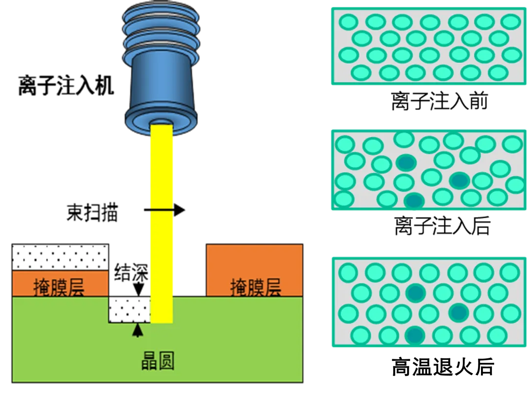 碳化硅器件制造環節主要包括“光刻、清洗、摻雜、蝕刻、成膜、減薄”等工藝。為了實現碳化硅器件耐高壓、大電流功能,離子注入工藝成為碳化硅摻雜的重要步驟,離子注入是一種向半導體材料加入一定數量和種類的雜質,以改變其電學性能的方法,可以精確控制摻入的雜質數量和分布情況。然而離子注入后,碳化硅材料原本的晶格結構被破壞而變成非晶態,這種晶格損傷必須在退火過程中修復成單晶結構并激活摻雜物。